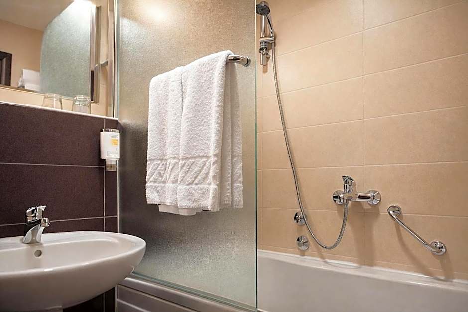 Comfort double room is spacious, modern furnished room with one king size bed, a flat screen TV and a desk. The private bathroom comes with a bathtub, toiletries and a hairdryer. It also includes a bathrobe and slippers. A safe and a mini-bar are provided.